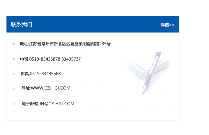 傳真:0519-83435688    郵編:213135    網址:WWW.czjhgj_com.gdebs.com    電子郵箱:JH@czjhgj_com.gdebs.com